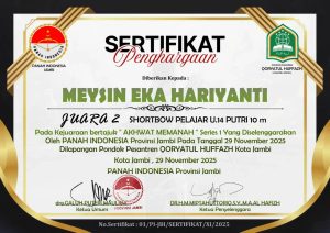 Alhamdulillah, perwakilan siswa kita berhasil meraih hasil membanggakan. Dengan jarak 10 meter berhasil mendapat juara 2 atas nama Meysin Eka Haryanti. Selain memperoleh pengalaman berharga, mereka juga tampil percaya diri dan menunjukkan akhlak sportif sepanjang perlombaan. Keikutsertaan ini diharapkan dapat menjadi motivasi bagi siswa lain untuk terus mengembangkan potensi dalam bidang olahraga sunnah.